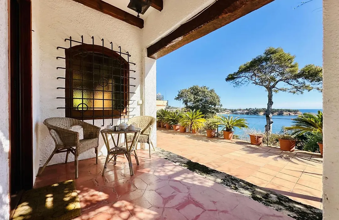 Gasten kunnen genieten van een kust uitzicht op de zee vanaf een terras in de 2-slaapkamer Maset Costabravasi Villa Sant Feliu de Guíxols, op circa 1 km afstand van de Camino de Ronda.